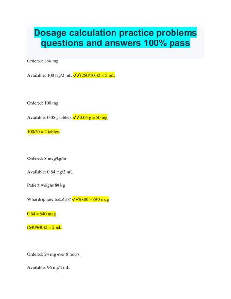 Best answers to the drug dosage practice problems pdf Download EBook Sites No Sign Up - As we know, Download EBook is a great way to spend leisure time. Almost every month, there are new Ebook being released and there are numerous brand new Ebook as well.