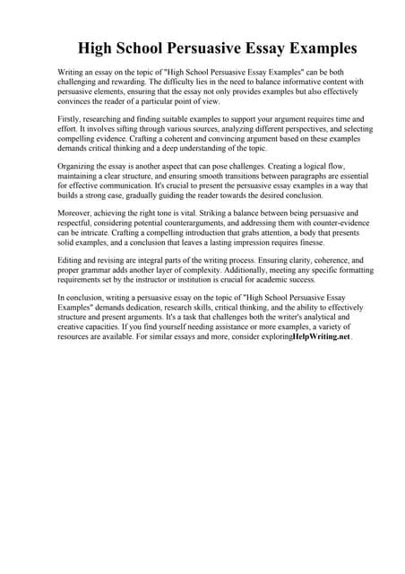 Read sample high school persuasive essays Epub online is a convenient and frugal way to read sample high school persuasive essays you love right from the comfort of your own home. Yes, there sites where you can get Epub "for free" but the ones listed below are clean from viruses and completely legal to use.